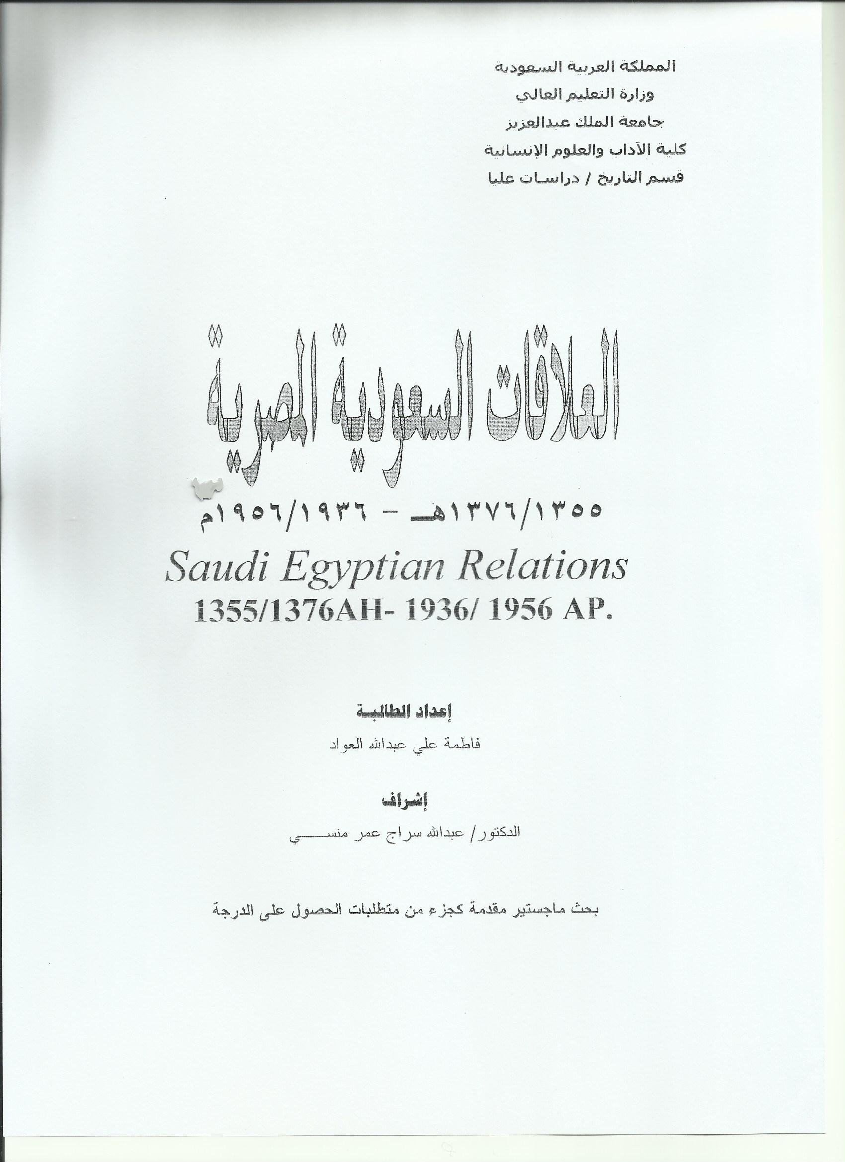 العلاقات السعودية- المصرية الفترة من 1355هـ -1376هـ الموافق (1936م- 1956م)